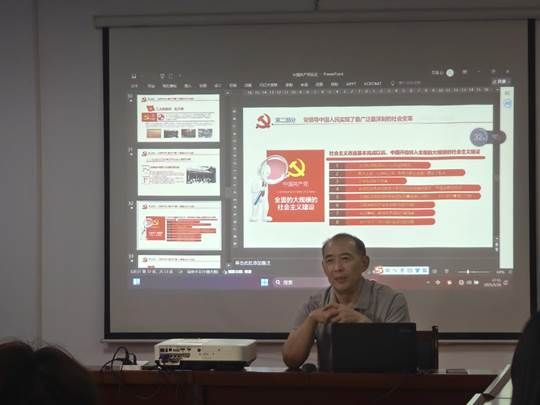本次会议,张武勤书记从1921年在嘉兴南湖的一艘红船上,中国共产党诞生,如同一道曙光,照亮了中国革命的道路开始讲起。接着,张书记讲述了党历经土地革命、抗日战争、解放战争,带领中国人民推翻“三座大山”,建立新中国,让人民成为国家的主人。在社会主义建设时期,党领导人民艰苦奋斗,逐步建立起独立的工业体系和国民经济体系。改革开放的号角吹响后,中国经济腾飞,综合国力不断提升。党的十八大以来,在以习近平同志为核心的党中央领导下,中国在脱贫攻坚、科技创新、国际合作等方面取得举世瞩目的成就,如“一带一路”倡议。最后,张书记表达了对同学们的期盼,希望同学们能够在之后的日子里坚定信心,埋头苦干,奋勇前进,为全面建设社会主义现代化国家,全面推进中华民族伟大复兴而团结奋斗。