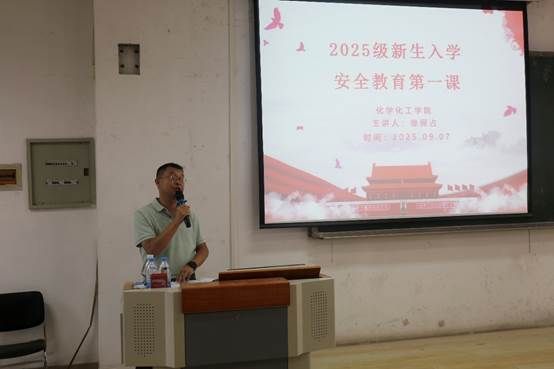 遵守规章远离危险,增强意识保障安全。2025年9月7日上午,化学化工学院在崇智楼四阶二教室召开“安全教育第一课”新生入学教育,此次会议由党总支副书记徐保占主讲,化学化工学院25级全体新生参加。