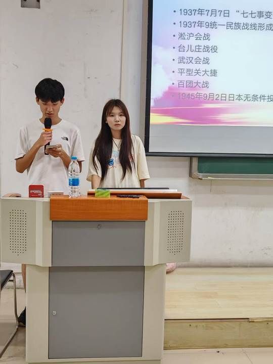 会议开始,主讲人通过视频资料回顾了九一八事变的历史,引导同学们在铭记国耻中增强爱国情怀。随后,班委霍曦分享对抗战时期江阴海战的认识,先烈们的英勇事迹深深感染了在场同学。接着,主讲人阐述了抗战精神的内涵,指出其作为中国共产党人精神谱系的重要组成部分,体现了天下兴亡、匹夫有责的担当意识。最后,主讲人举了杨靖宇和江姐的例子呼吁我们当承先辈之志,以理想为帆,奋斗为桨,用青春护佑山河。