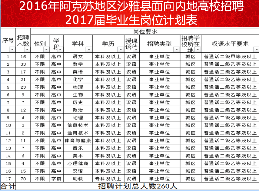 沙雅县教育局赴内地高校宣传招聘2017届毕业生工作实施方案