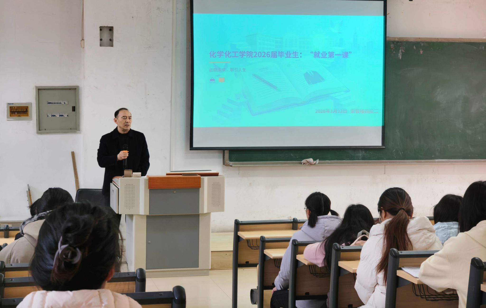 为帮助2026届毕业生明晰就业方向、强化安全意识、提升就业竞争能力,化学化工学院于3月12日上午在崇智楼四阶二教室开展以“启航未来,职引人生”为主题的2026届毕业生“就业第一课”。本次会议由学院党总支书记张武勤、院长陈凌霞、党总支副书记刘晓宇主讲,2022级全体学生参加。