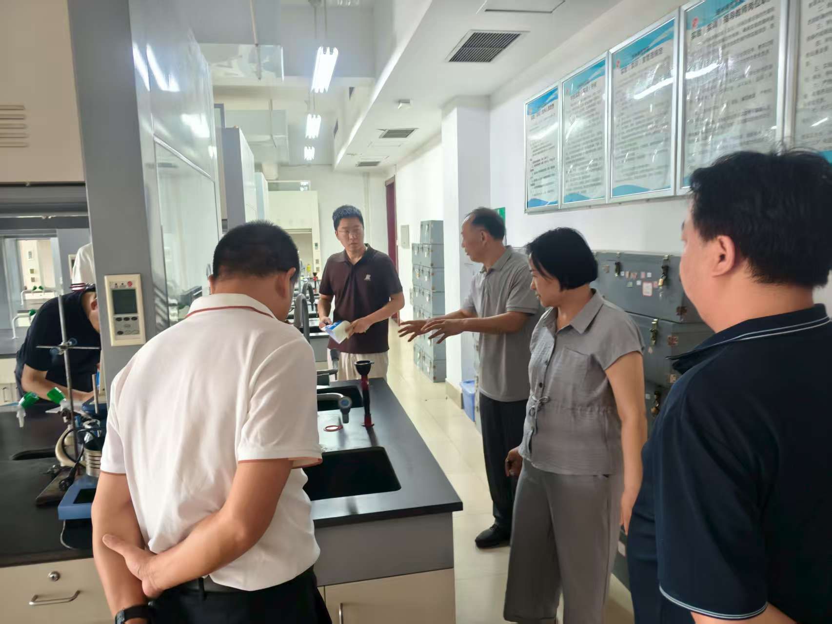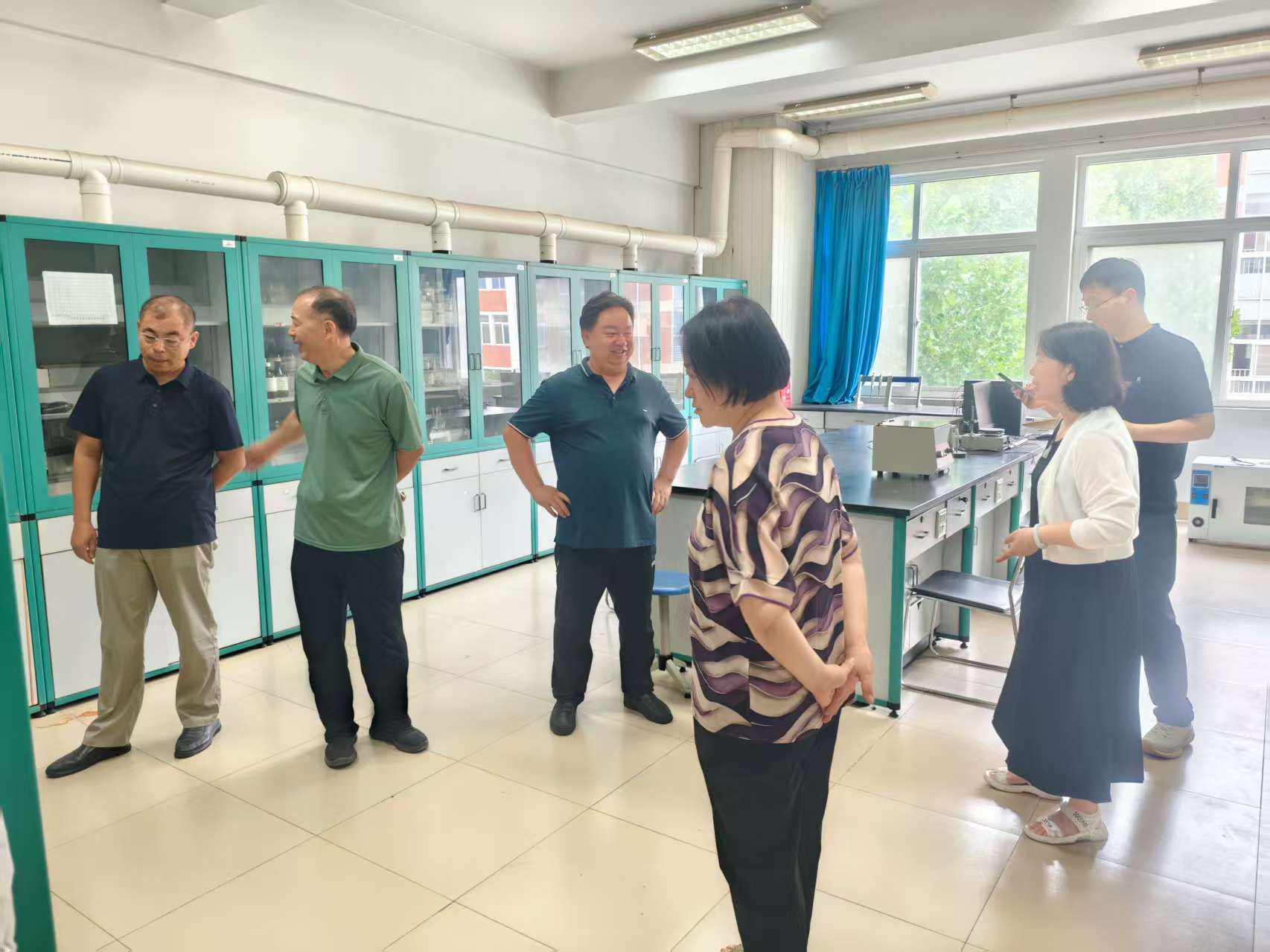 为新学期实验教学保驾护航,8月26日与29日,化学化工学院党总支书记张武勤、院长陈凌霞带领学院领导班子,连续开展两轮实验室安全全覆盖检查。检查组深入基础教学实验室、综合实验室、博士科研室及危化品仓库等重点场所,就消防设施、危险品管理、设备运行等关键环节进行了细致排查,全面夯实实验教学与科研工作的安全基础。张武勤书记在检查中强调“安全是实验教学的生命线”,必须始终将师生和科研人员的生命安全置于首位;陈凌霞院长指出,要以此次检查为契机,查漏补缺、消除隐患,为本科教育教学审核评估奠定坚实基础。