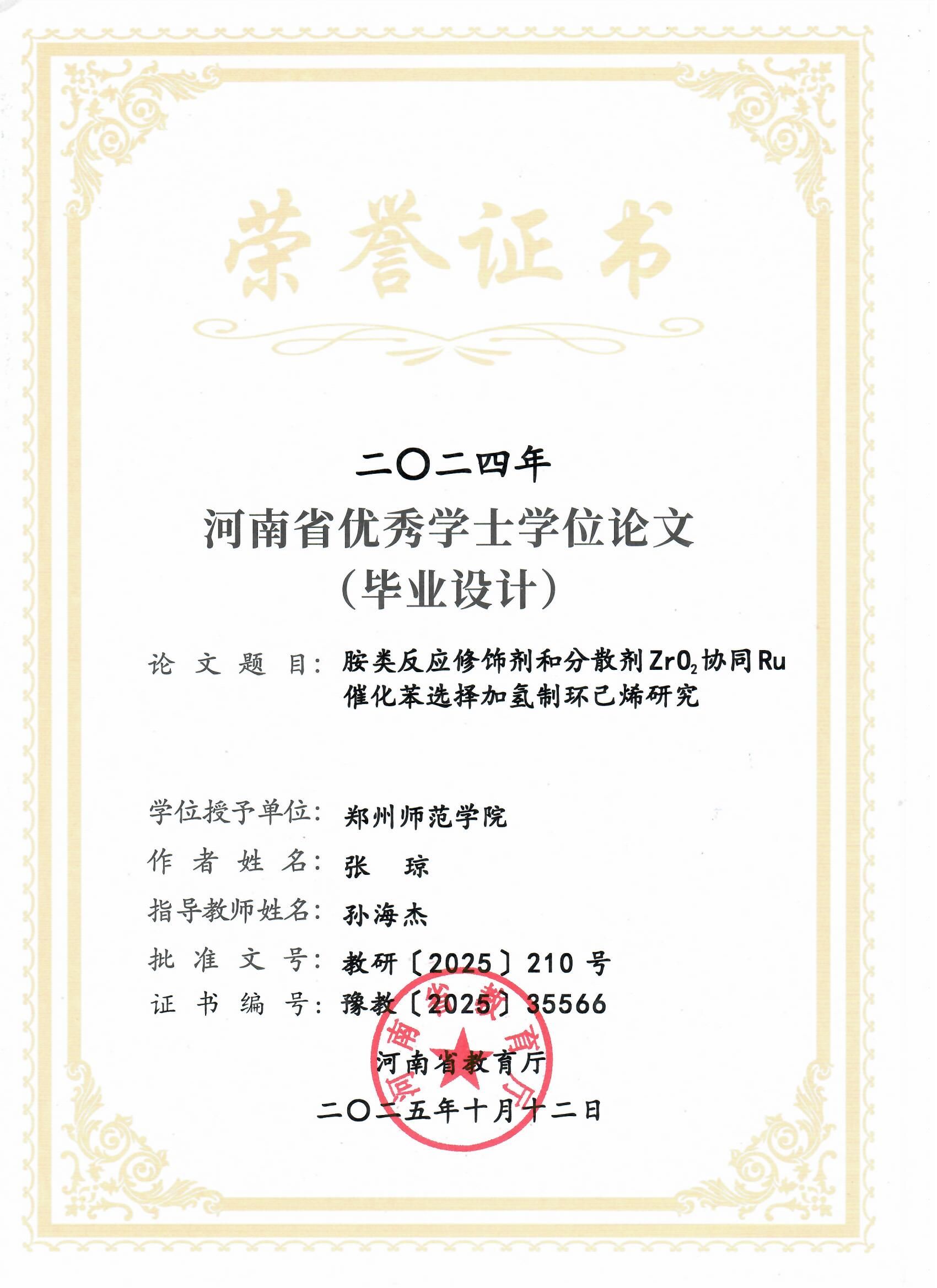 2024届化学专业毕业生张琼(现河南大学硕士研究生)