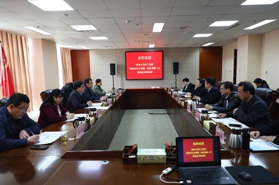 秦会安介绍了郑州师范学院化学化工学院的基本情况,重点就专业设置、师资力量、人才培养、课程建设、招生就业和学科平台建设等方面与对方进行了交流讨论,特别希望与郑州大学化工学院在学科建设、科研项目申报,青年教师培养等方面进行深入合作。海萍丽就课程思政及师生意识形态工作与对方进行了交流。陈凌霞介绍了学院一流专业,一流课程建设情况,并针对我院科研工作困局向对方寻方问诊。