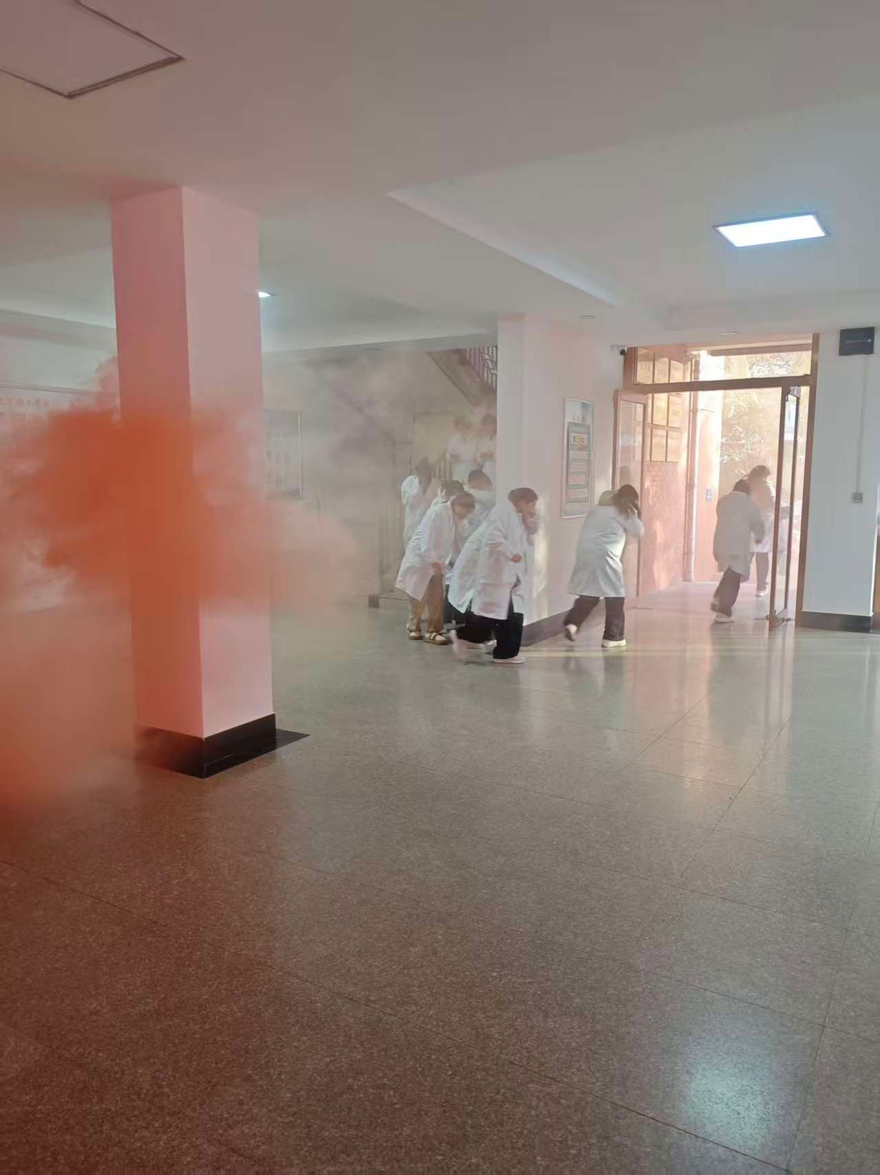 理论知识培训结束后,紧接着进入逃生演练环节。随着烟雾升起、烟感声骤响,师生们迅速反应,按照预先规划的逃生路线,有序地从崇义楼撤离到安全区域。在逃生过程中,大家严格遵守秩序,不拥挤、不推搡,展现出了良好的应急素养。整个逃生过程紧张而有序,仅用了短短几分钟,全体人员便安全撤离完毕。